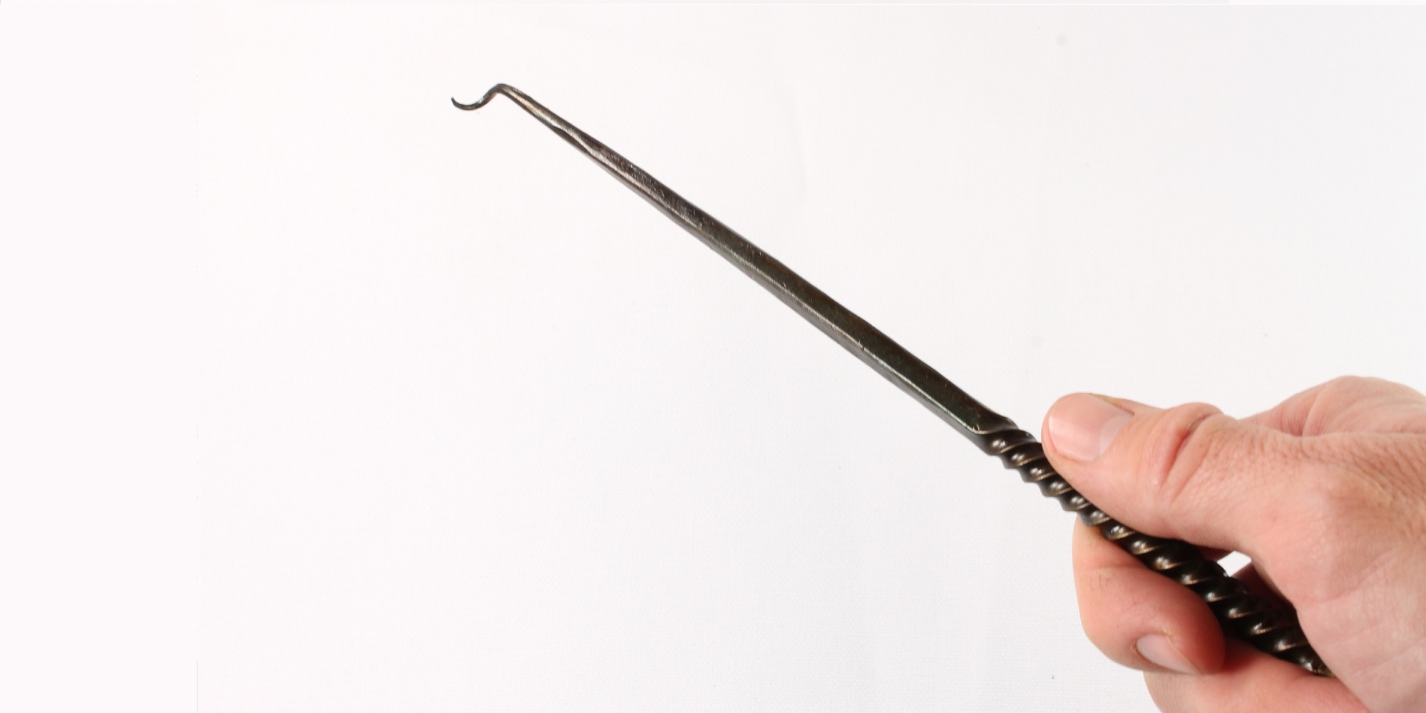 Turn your bacon, sausage, even tofu slabs with a flick of the wrist. This utensil is made with a corkscrew shape at the end for easily snagging the meat and just as easily letting go with only a slight movement of wrist or fingers. Very useful for camping.