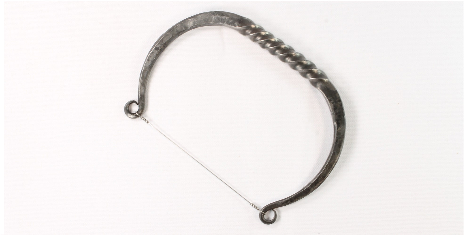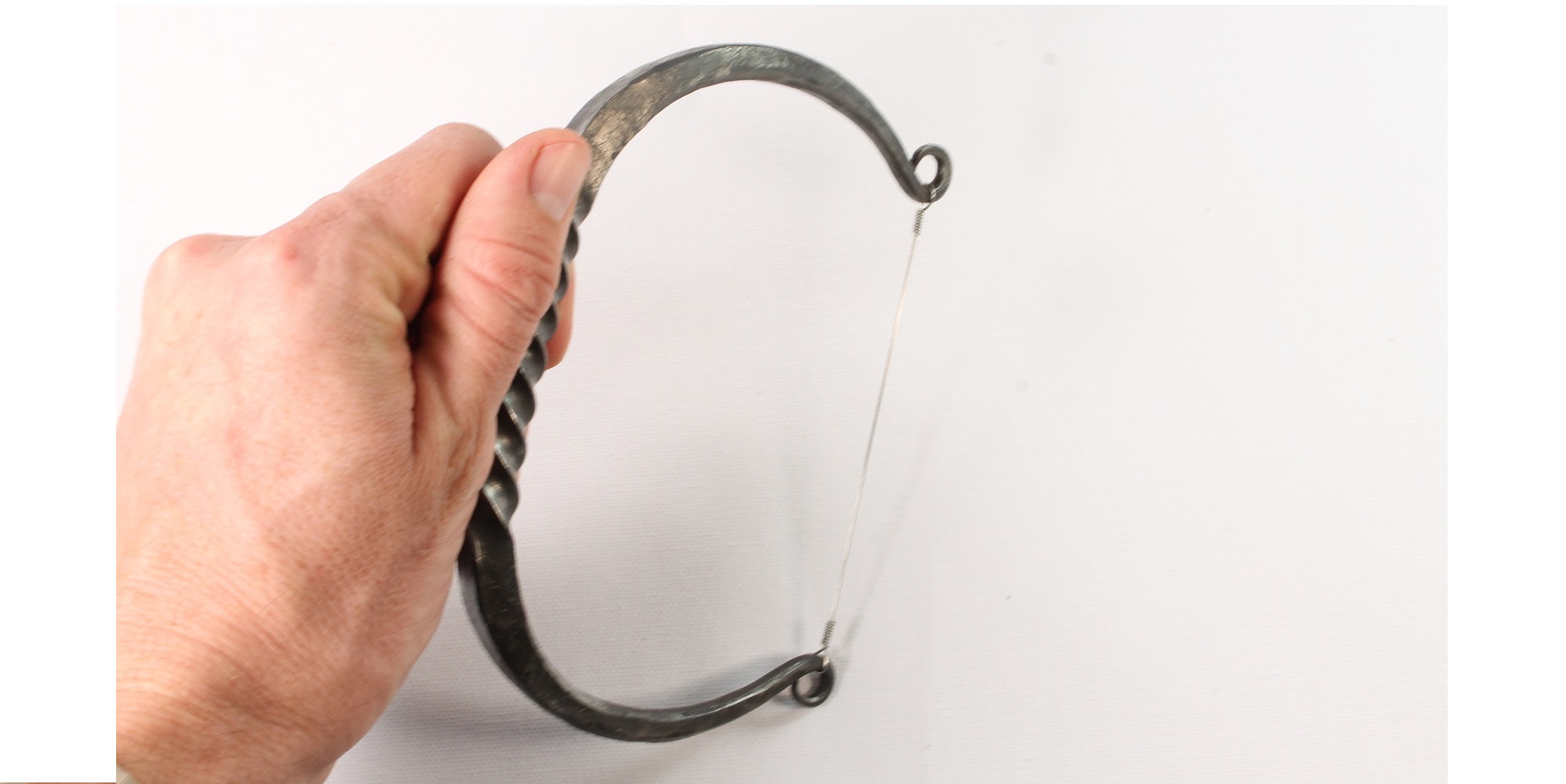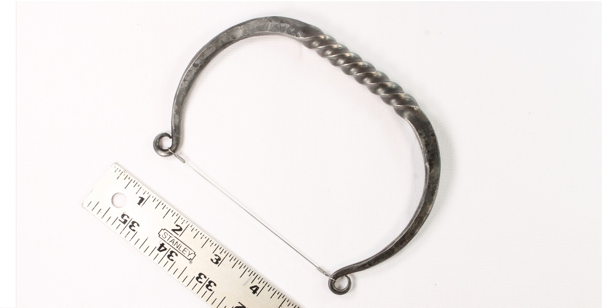 This cheese slicer is forged and twisted by blacksmith Jason Watkins from steel stock and finished with beeswax. Handle is 3/8" thick. Wire is stainless steel and very taut. Perfect for dinner party or the cheese addict in your life.